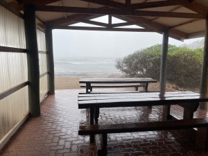 Again by the shoreline at Emu Bay, watching birds, in the suddenness of a downpour at Stokes Beach.