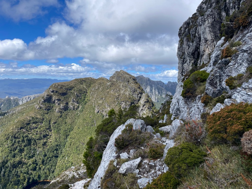 Off the big ferry and onto the Frenchmans Cap hike for three days exploring the Franklin-Gordon Wild Rivers National Park. Button grass plains, mossy forests and alpine scenery. In Robert Macfarlane style, roots and rocks become companions. A heightened experience at Lake Tahune camp looking up at the quartz Cap.